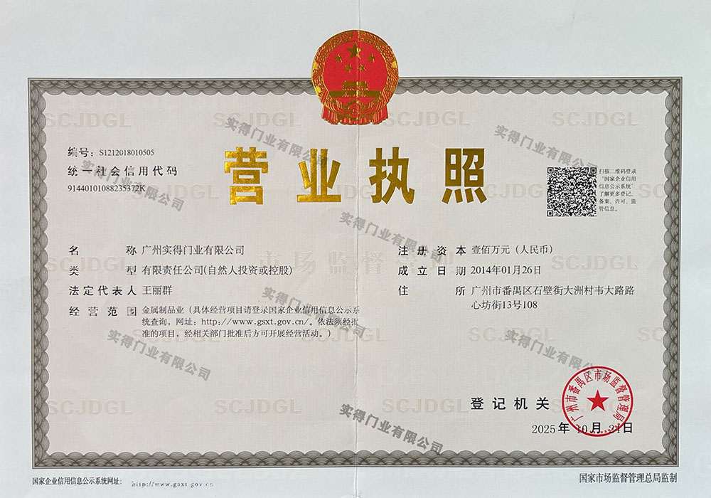 廣州實得門業有限公司成立于 2014年, 工廠擴建于廣東佛山南海區占地面積 5000 多平米,公司是集設計、開發、銷售、服務為一體的企業。致力于同類產品文化的研究,并擁有高素質的專業技術研究人員,技術力量雄厚,科技含量高,產品質量好,贏得了客戶的信賴。擁有設計師4人,工藝師6人,專業質檢人員2人,生產工人23人,生產設備共36臺。致力于純平鋁板門,鏡面車庫門。鋁合金透視門,格柵車庫門,高端硬質卷簾門等。