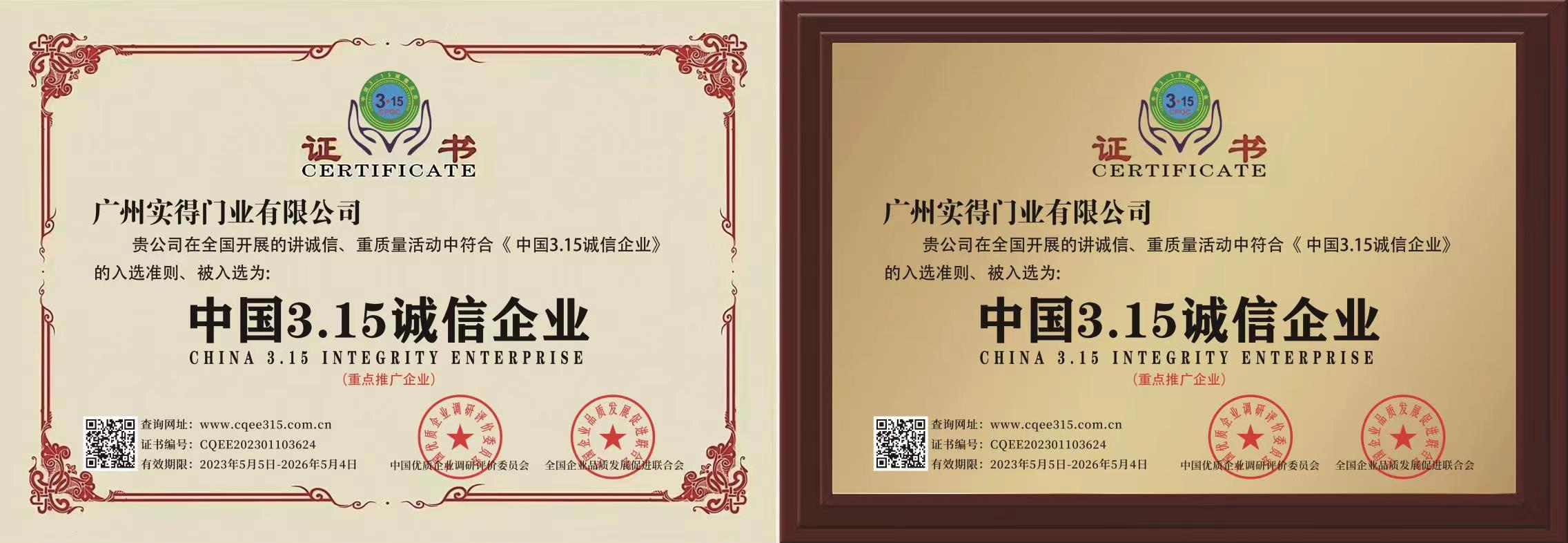 3.15誠信企業證書