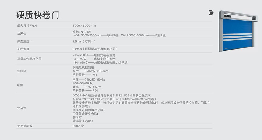 應用:廣泛應用于工業、倉儲和商業建筑室內及室外用門;具有最佳的抗風性能;結合了工業滑升門及PVC快速門的優點。